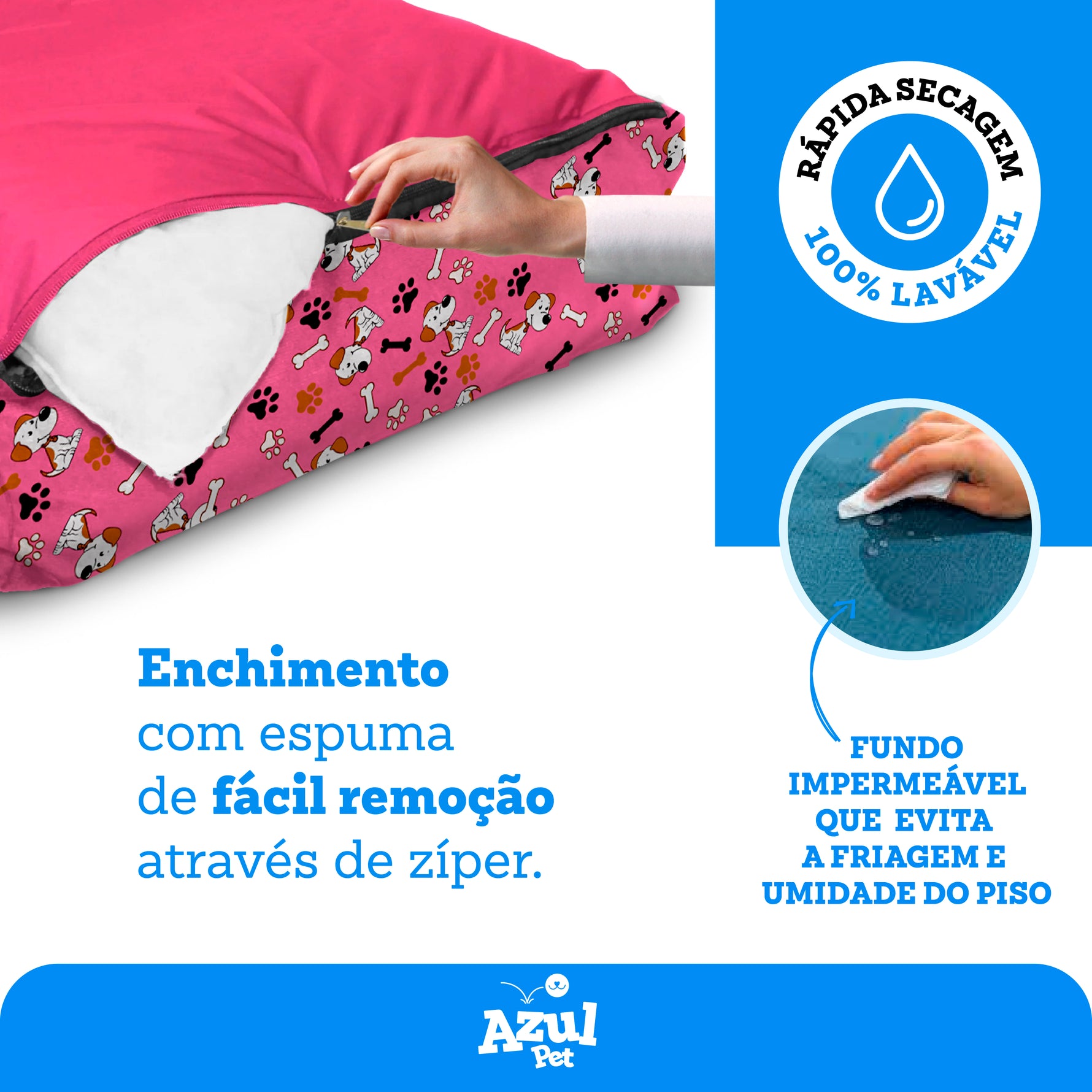 Cama Luxo Quadrada com Ziper - Rosa