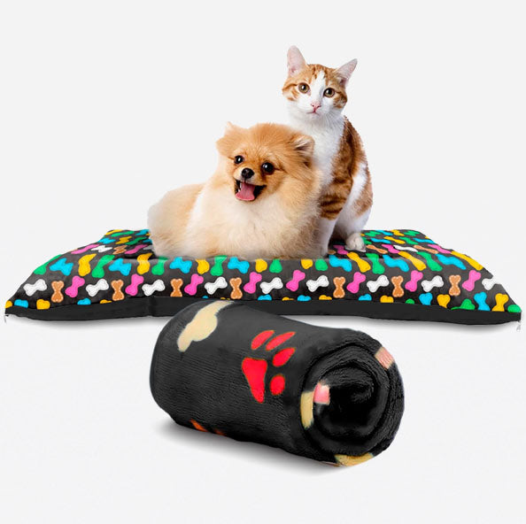 A manta tem estampas lindas que deixarão o soninho de seu cachorro ou gato ainda mais charmoso.